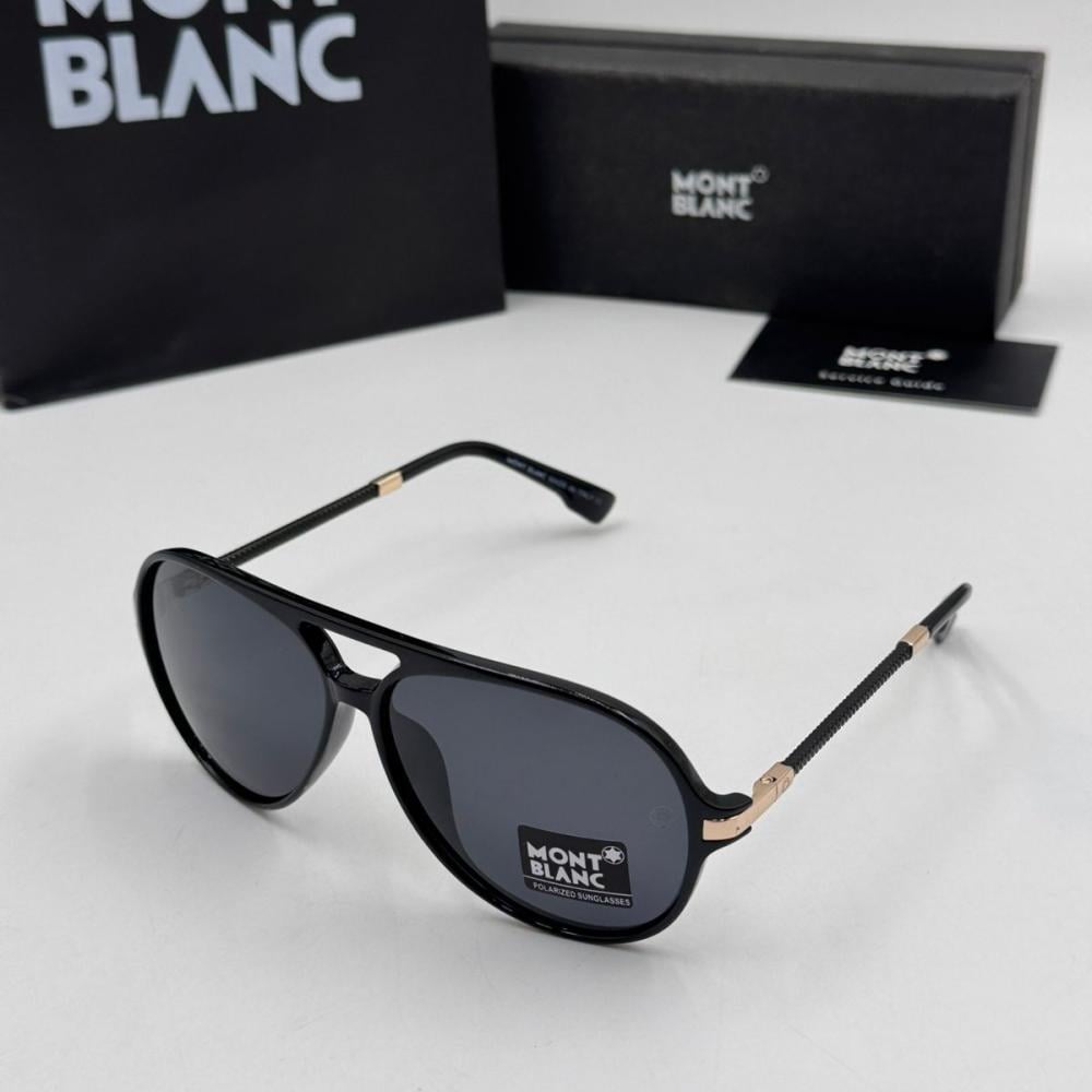 نظارات شمسية مونت بلانك - تصميم Aviator فاخر بإطار أسود ولمسات ذهبية